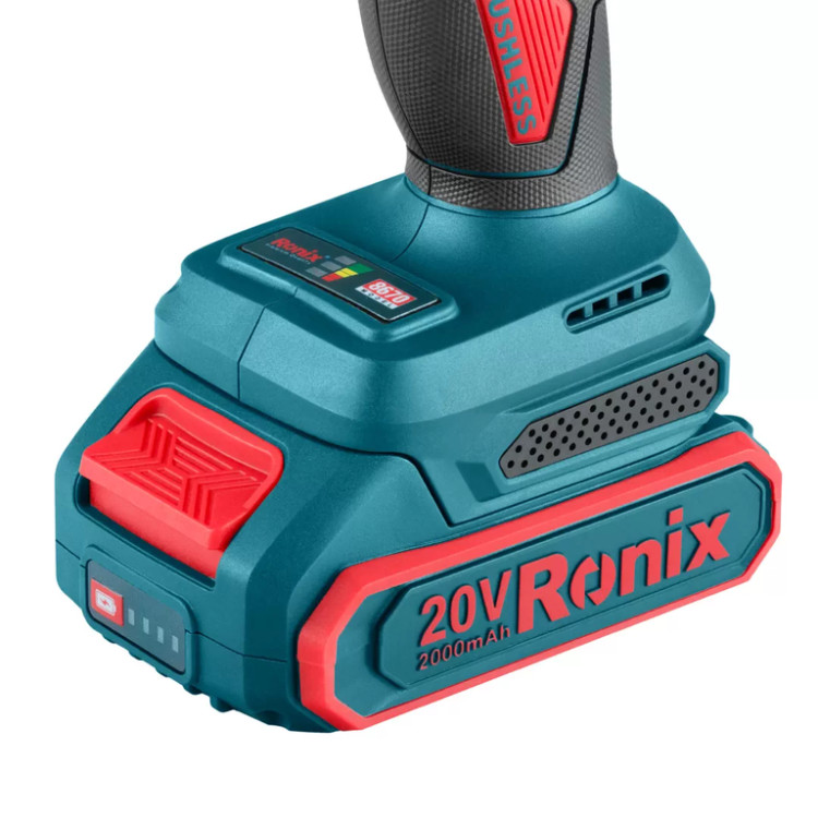 : دریل شارژی براشلس رونیکس 20 ولت چکشی 13 میلی متری 60 نیوتن متر مدل 8670