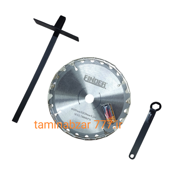 - آچار ،تیغه ،دو عدد باتری ،گونیا گرد بر (خط کش )