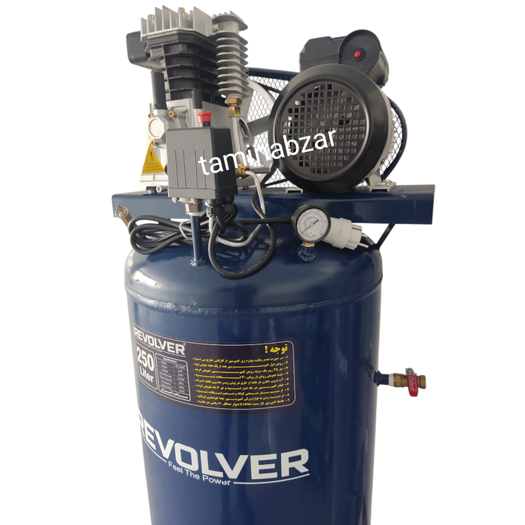 کمپرسورهوا ۲۵۰ روغنی دو اسب ایستاده REVOLVER صنعتی همراه با گارانتی صادرانی مدل RC2501