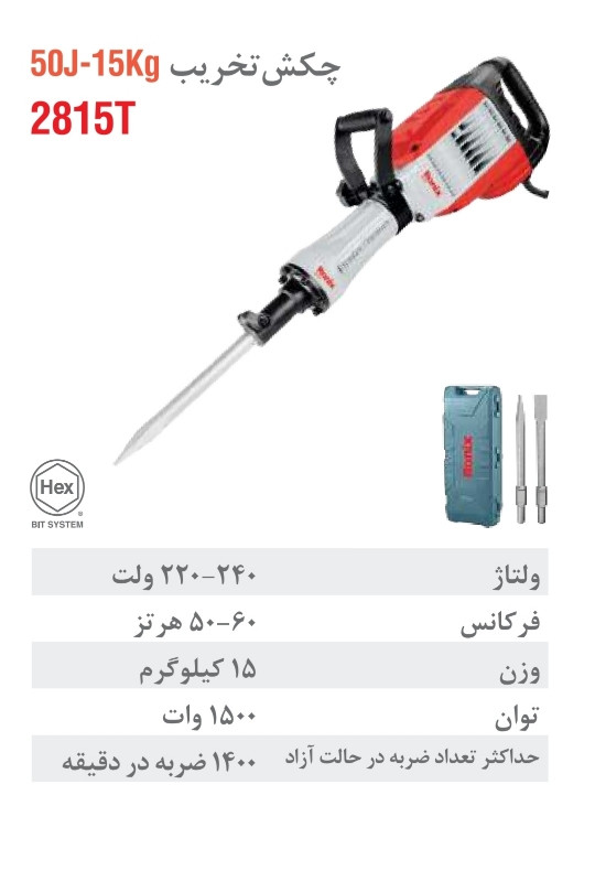 -مجهز به موتور پر قدرت 1500 واتی و توان ضربهای به میزان 50 ژول، مناسب برای سنگینترین عملیات تخریب