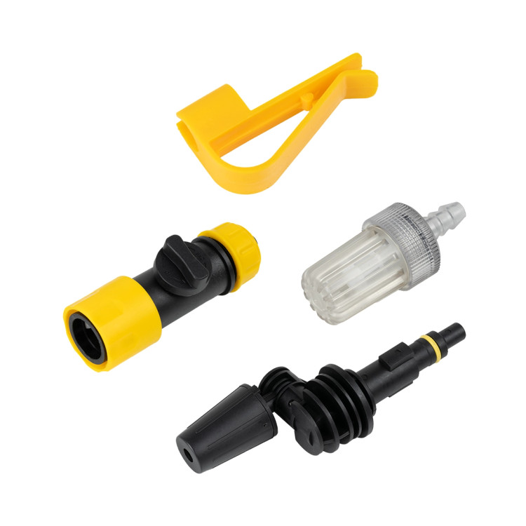 لانس با نازل 6 حالته - لانس افزایش طول - شلنگ 5 متری - شارژر - 2 عدد باتری - آویز شلنگ - نازل بطری آب - فیلتر - بطری مواد شوینده - رابط اتصال