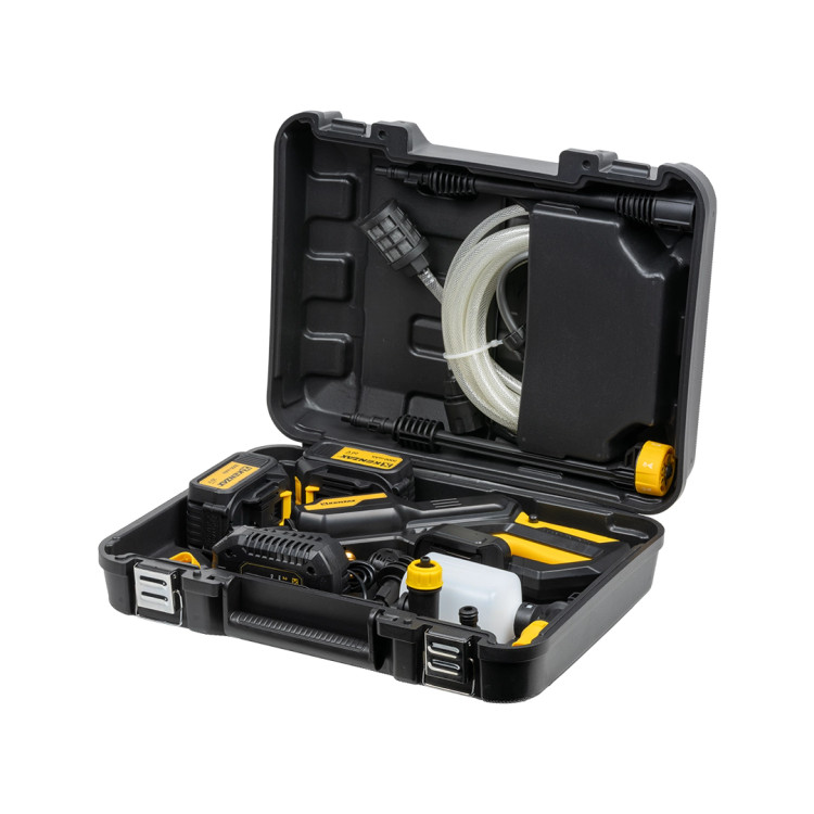 کارواش شارژی براشلس 20 ولت مدل 8770 از خانواده ابزارهای شارژی کنزاکس است که برای شستوشوی دقیق و استفاده در فضاهایی که دسترسی به برق و آبِ پرفشار محدود است، با حملونقل آسان طراحی شده. این دستگاه دارای یک موتور براشلس ۲۵۰ واتی است؛ موتوری کمصدا و کارآمد که علاوه بر افزایش طول عمر، افت توان در کار طولانی را به حداقل میرساند. بدنهی سبک و طراحی ارگونومیک، به همراه قابلیت خودمکشی برای برداشت آب از مخزن، سطل یا آبگیر طبیعی، این مدل را به گزینهای ایدهآل برای شستوشوی وسایل نقلیه، محوطه، مبلمان فضای باز، آبیاری گیاهان تبدیل کرده است.