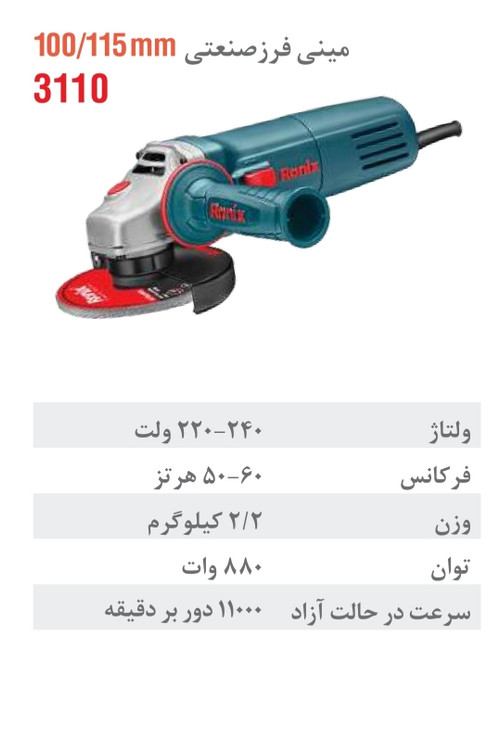 مینی فرز رونیکس برقی 115 میلیمتری 880 وات 3110