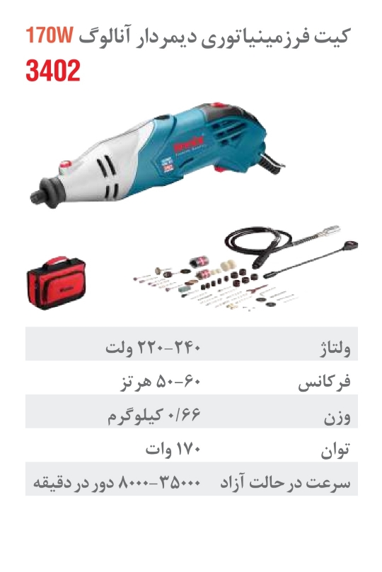 - مجهز به موتوری با توان 170 وات و راندمان بالا که سرعتی بالغ بر 8000-35000 دور در دقیقه ارائه می دهد