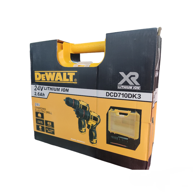 دریل شارژی براشلس دیوالت سه نظام ۱۳ فلزی ۲۴ ولت ۲/۶ آمپر مدل DCD710DK3