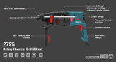 2725 رونیکس دریل بتنکن 26 میلیمتری 850 وات 3 کیلویی