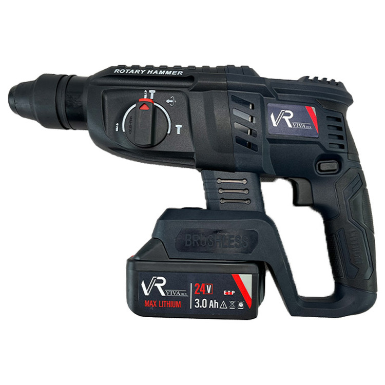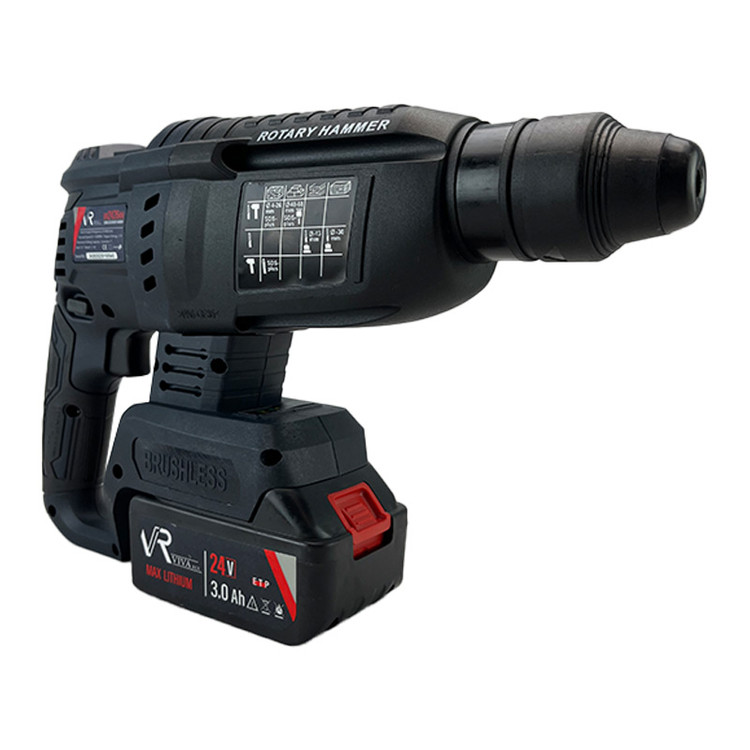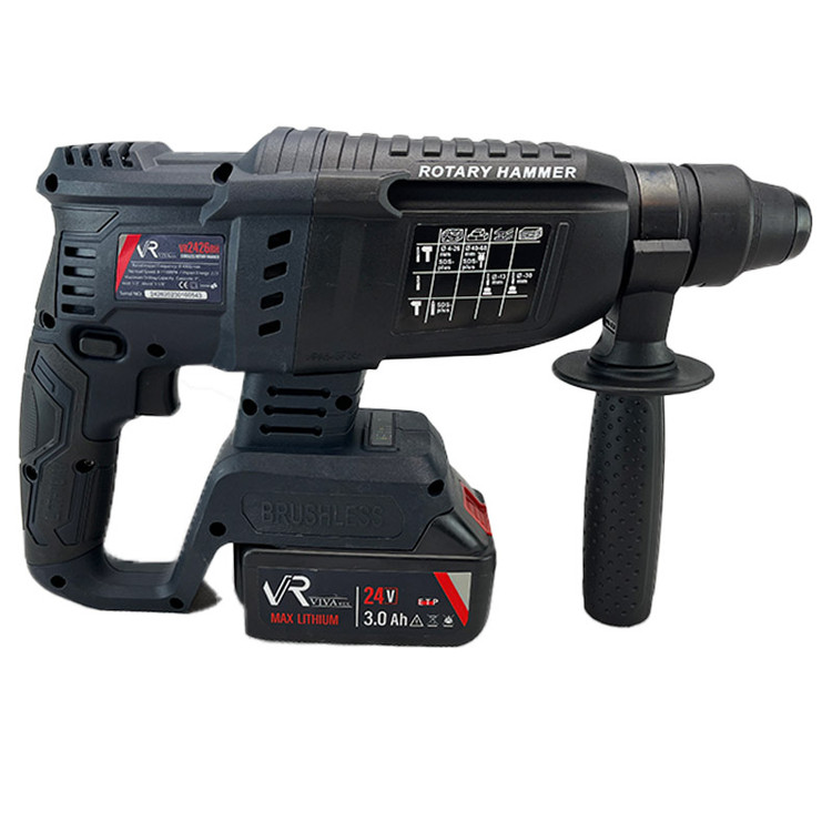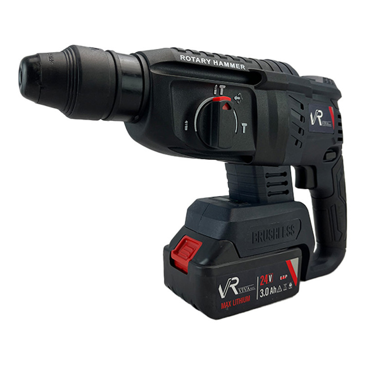 بتن کن شارژی ویوارکس همراه با موتور براشلس یک دریل قدرتمند ، زیبا با سه کاربرد مختلف سوراخ کاری، چکش و تخریب همه کاره ای کامل است . کلید پاور این دستگاه به دیمر گازی مجهز شده است که با فشردن آن به میزان لازم، به سرعت گردش و ضربهی مورد نیاز خود خواهید رسید.نرخ ضربهای که این دریل بتن کن میتواند برای تخریب بهتر بر روی سطوح بتنی وارد کند، برابر با 0 تا 4900 ضربه در دقیقه است که انرژی هر ضربه به اندازهی2.7 ژول میرسد. سرعت گردش آزاد این دریل بنا به کاربری های مختلف متغیر است و در بازهی 0 تا 1150 دور در دقیقه قرار میگیرد. این دستگاه بر روی بدنهی خود دارای یک کلید چرخشی 4 حالته است که با پیچاندن آن بر روی هر یک از چهار وظیفهی خود قرار میگیرد. ظرفیت سوراخکاری این بتن کن در بتن و مصالح برابر با 22 میلیمتر، ظرفیت سوراخکاری آن در فولاد و فلزات برابر با 13 میلیمتر و ظرفیت سوراخکاری آن در چوب برابر با 28 میلیمتر است. از قابلیت های خوب این دریل که در هنگام باز و بسته کردن پیچ ها و نیز در هنگام گیر کردن مته در سطوح به کار شما خواهد آمد،داشتن قابلیت گردش چپگرد و راستگرد است که با کمک یک کلید دو وضعیتی بر روی بدنهی دریل، انجام می گیرد. سیستم ابزارگیر این دریل بتن کن به صورت چهارشیار است و به عنوان لوازم جانبی، 3 عدد مته الماسه و 2 عدد قلم نوک تیز و نوک پهن چهار شیار در بسته بندی محصول قرار داده شده است. این دستگاه شارژی که مطابق با استاندارد CE اروپا ساخته شده است، برای تخریب مصالح ساختمانی، سطوح سیمانی، سطوح بتنی و سایر موارد مشابه به کمک شما خواهد آمد. این دریل همه کاره 24 ولتی که دارای سیستم براشلس (Brushless) است، همراه با خط کش عمق سنج، دسته گردان 360 درجه، دفترچه راهنما و کارت گارانتی ارائه شده است. دستهی کمکی این دریل دارای دستگیرهی نرم از پلاستیک TPR است که به خاطر آجدار بودن،دارای قابلیت ضد تعریق و ضد لرزش است.