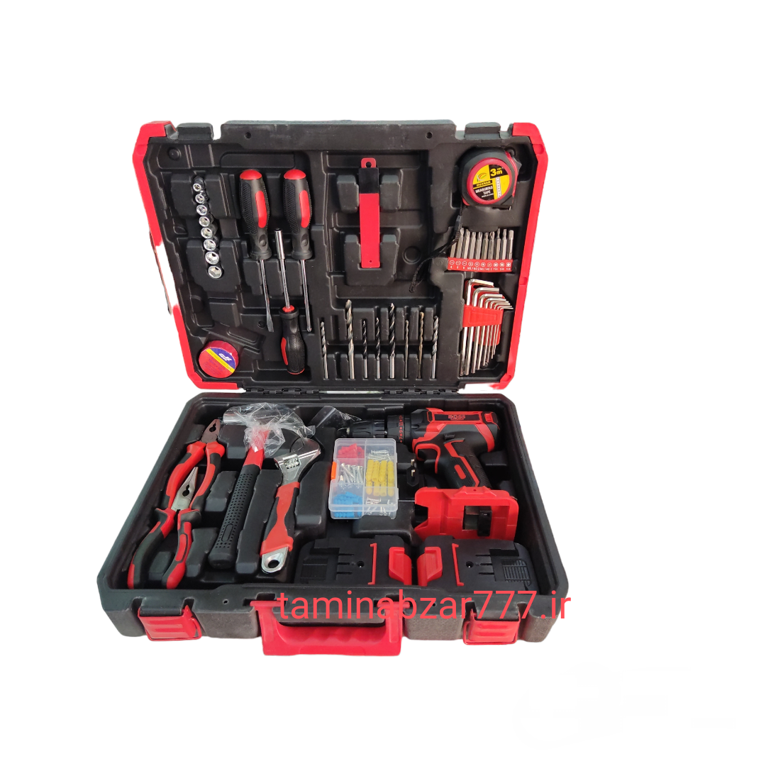 مجموعه رول پلاک و پیچ به همراه جعبه مخصوص.6 عدد مته در سه سایز مختلف. پیچ گوشتی الکترونیکی.2 عدد سر پیچ گوشتی ستاره ای.5 عدد سر پیچ گوشتی چهارسو. کمان اره آهن بر به همراه تیغ.پیچ گوشتی الکترونیکی دوسو.2 عدد سر پیچ گوشتی دوسو.مجموعه 9 عددی سری بکس..متر 3 متری کریستالی.1 عدد بکس سر دریلی.پیچ گوشتی بکس خور.کیف حمل بی ام سی.پیچ گوشتی چهارسو.تیغ یدک موکت.چسب برق مشکی.فازمتر دیجیتال.چکش دوشاخ.مته پروانه 16.مته پروانه 12.انبر دم باریک.شارژر آداپتور سایر مشخصات .1 عدد آچار فرانسه.1عدد انبردست.1 عدد انبردم باریک..1 عدد فازمتر.