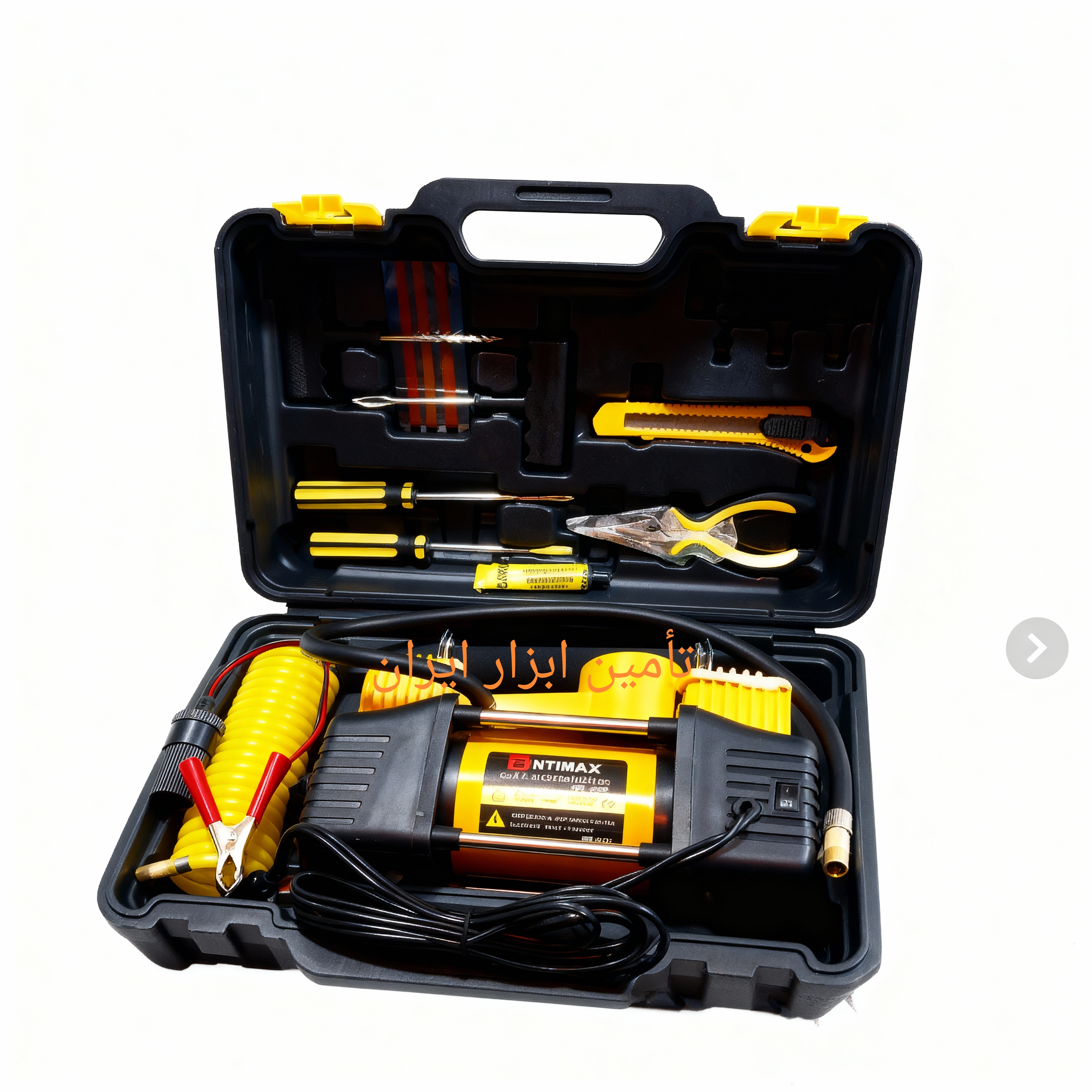 اقلام همراه دارای نازل همراه کیف کامل به همراه ست پنچر گیری و پیچ کج گوشتی و انبردست،شیلنگ فنری ...