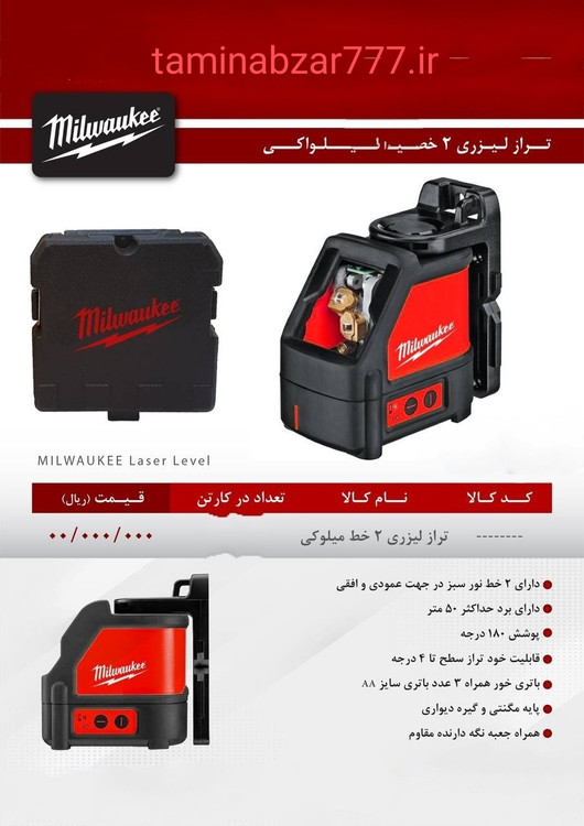 تراز لیزری دو خط نور سبز در دو جهت حرفه ای میلواکی مدل ،A2 کارگاهی مدل ،A+++