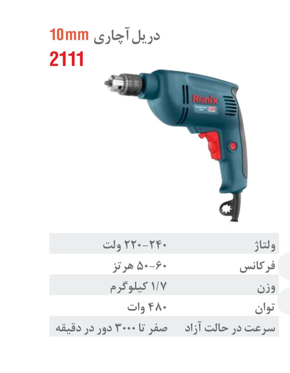 دریل رونیکس برقی 10 میلی متری آچاری 480 وات-آچاری2111