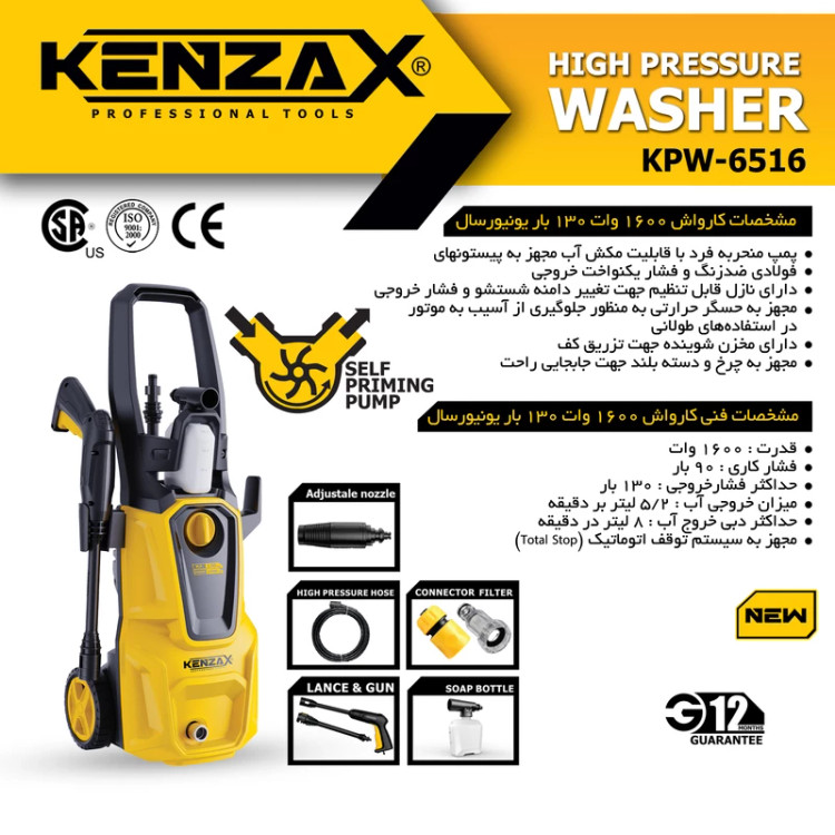 کارواش سم پاش کنزاکس 130 بار معادل 300 بار محصولات چینی 1600 وات خودمکش مدل6516KPW