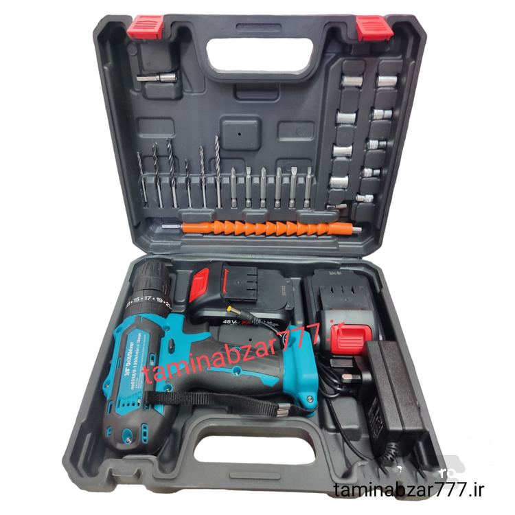 دریل شارژی باس 48 ولت دو باتری اتومات لوازم کامل تکنولوژی آلمان مدل LIFESTYLE