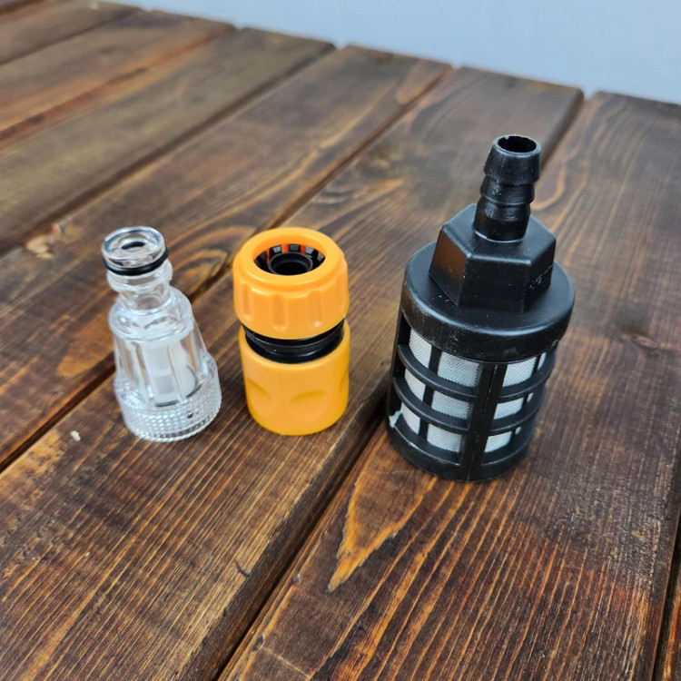 دارای گان، شلنگ فشار قوی، شلنگ ورودی و دو عدد اتصالات ورودی و یک عدد فیلتر بزرگ