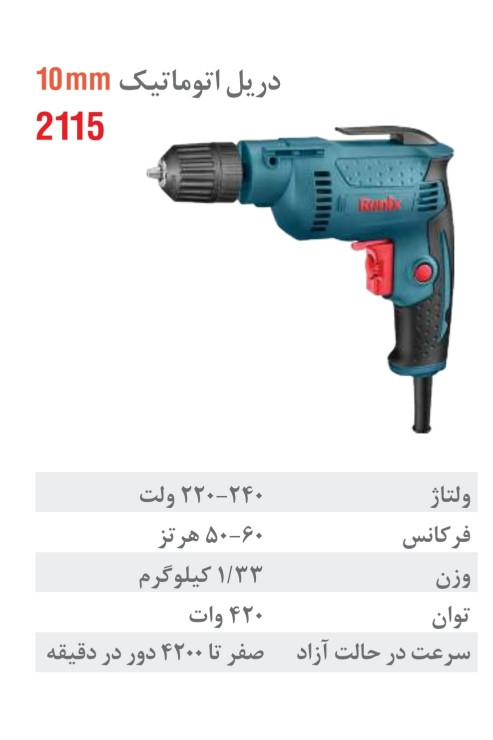 دریل رونیکس برقی 10 میلیمتری اتوماتیک 420 وات 4200 دور 2115