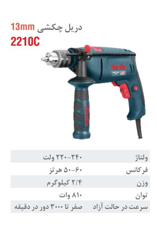 دریل برقی رونیکس چکشی 13 میلیمتری آچاری 810 وات 3000 دور 2210C