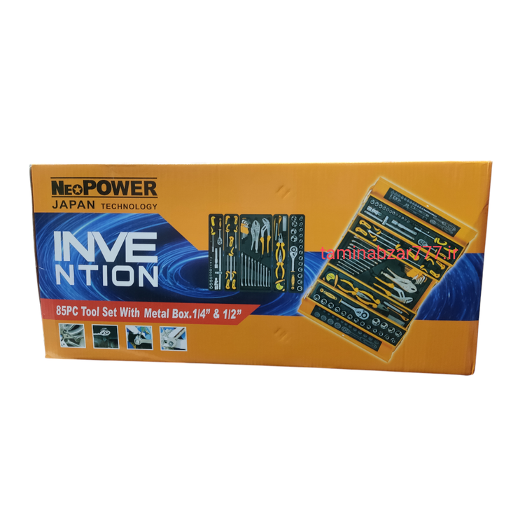 ست ابزار 85PC با جعبه فلزی. 114 اینچ و 1/2 اینچ NP مدل N85 تکنولژی ژاپن