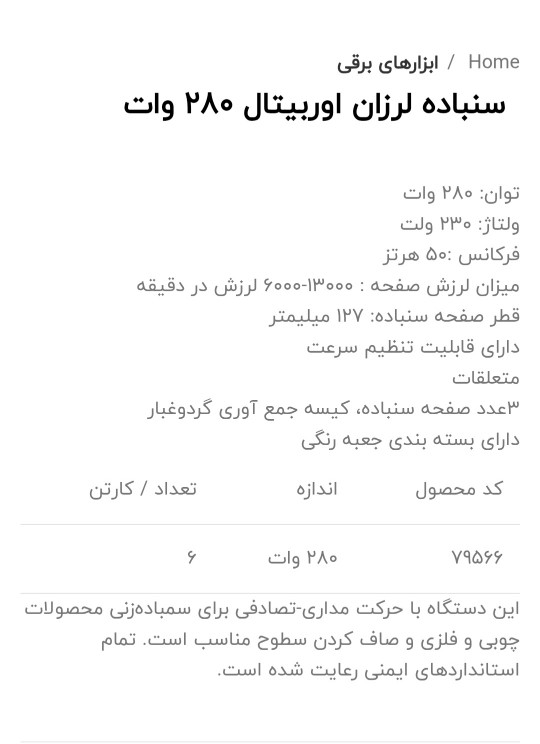 سنباده لرزان اوربیتال 280 وات تولسن صنعتی یک سال گارانتی مدل 79566